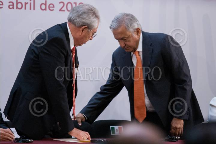 CIUDAD DE MÉXICO, 09ABRIL2019.- Jorge Alcocer, secretario de Salud, y Andrés Manuel López Obrador, presidente de México, durante la presentación del Informe de la Comisión de Alto Nivel “Salud Universal en el siglo XXI: 40 años de Alma-Ata”. FOTO: GALO CAÑAS /CUARTOSCURO.COM