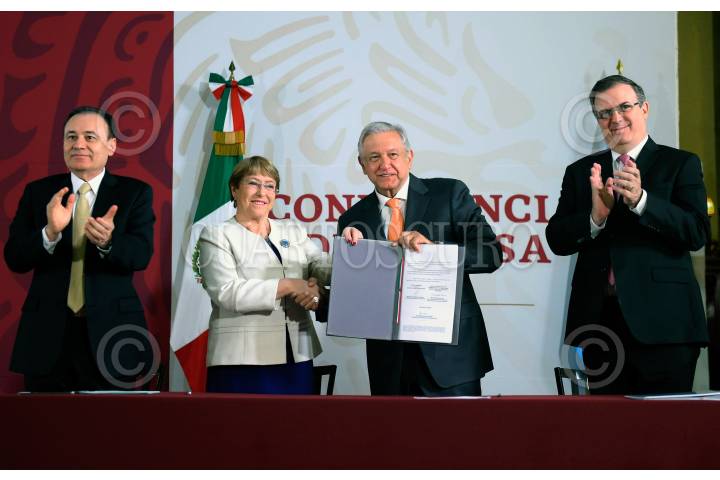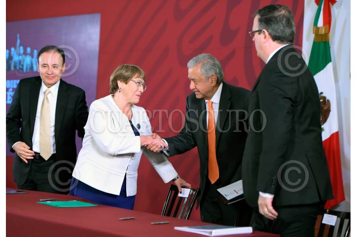 CIUDAD DE MÉXICO, 09ABRIL2019.- Andrés Manuel López Obrador, Presidente de México, y la Alta Comisionada de las Naciones Unidas para los Derechos Humanos, Michelle Bachelet, suscribieron hoy el Acuerdo para brindar Asesoría y Asistencia Técnica para la Formación y Operación en Materia de Derechos Humanos a la Guardia Nacional, Salón Tesorería de Palacio Nacional. FOTO: GOBIERNO DE LA REPÚBLICA /CUARTOSCURO.COM