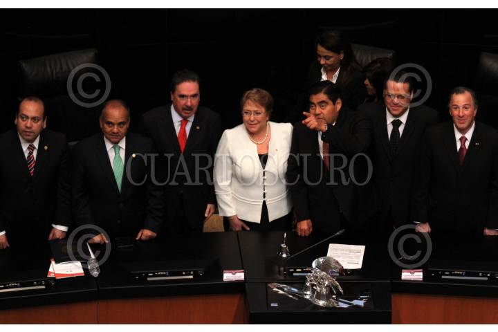 MÉXICO, D.F., 14AGOSTO2015.- Michellet Bachelet, presidenta de Chile, durante la sesión solemne que la Comisión Permanente del Congreso de la Unión realizó en el Senado de la República por su visita de estado. FOTO: ADOLFO VLADIMIR /CUARTOSCURO.COM