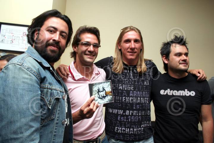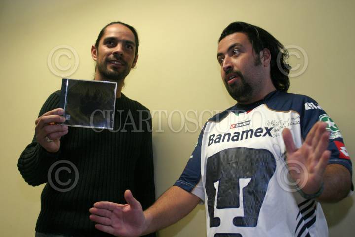 MÉXICO, D.F., 28FEBRERO2007.- Fue presentado el disco "Muchachitos de Porra Vol. II", por el músico Micky Huidobro, los jugadores de Pumas, Antonio Sancho y Leandro Augusto, y el vocalista de los Estrambóticos, Arturo Ruelas "Pinocho". FOTO: ISAAC ESQUIVEL/CUARTOSCURO.COM