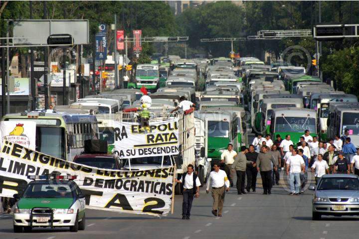 MÊXICO D.F. 09-MAYO-2006 Microbusero de la ruta 2 marcharon al Zócalo, para protestar cotra su lider y pedir la intervención de las autoridades del GDF. FOTO: Pedro Marrufo / CUARTOSCURO.COM