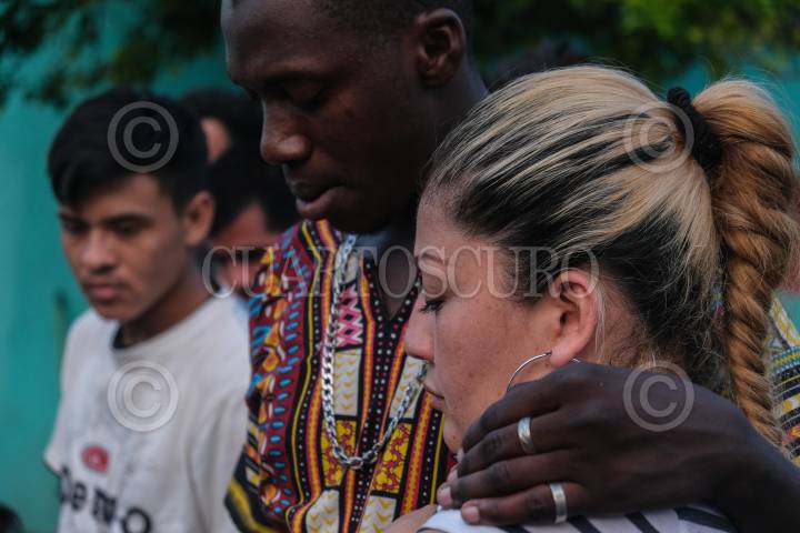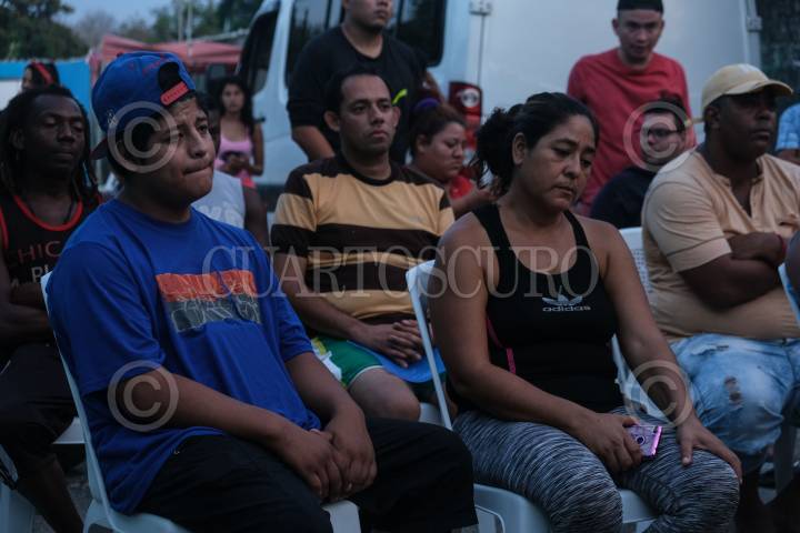 Familiares del hombre fallecido dentro de la Estación Migratoria de Tenosique, escuchan el pronunciamiento donde piden a las autoridades les brinden ayuda para solucionar su situación en México. El cuerpo del migrante guatemalteco aún se encuentra en territorio mexicano y aun no han podido darle sepultura sus familiares.