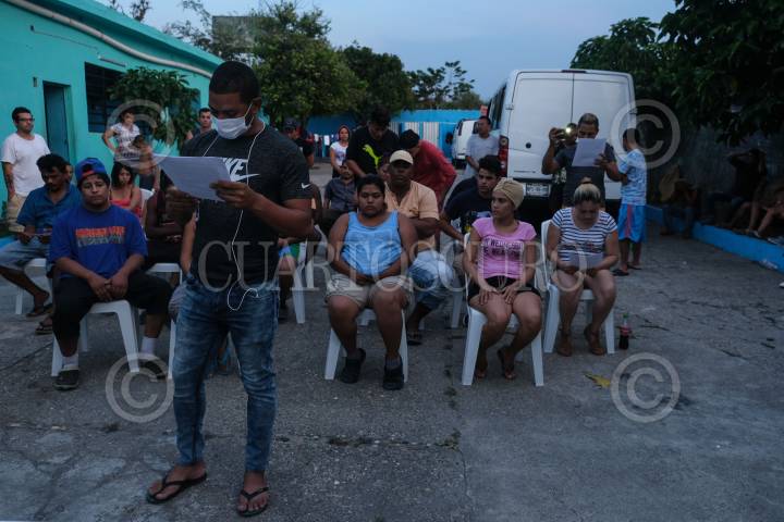 Personas migrantes leen su pronunciamiento antes de hacerlo publico en el albergue Ave Fénix.