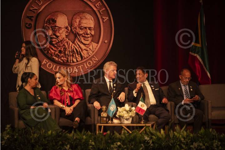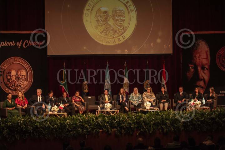 CIUDAD DE MÉXICO, 18JULIO2025.- La fundación Gandhi Mandela Foundation llevó a cabo aun homenaje al político y filántropo sudafricano Nelson Mandela, quien nació un día 18 de julio de 1918. El evento estuvo presidido por el presidente de la fundación en México, Manuel Granados Covarrubias, ex fiscal de la ciudad de México, así como la activista de origen guatemalteco, recién nacionalizada mexicana, Rigoberta Menchú. FOTO: PEDRO ANZA /CUARTOSCURO.COM