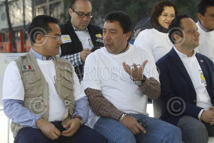 MÉXICO, D.F., 15FEBRERO2014.- Leonel Luna, delegado en Álvaro Obregón, Miguel Ángel Cámara, delegado en Xochimilco y Sergio Palacios, delegado de Azcapotzalco, durante la puesta en marcha del programa de mejoramiento urbano "Tu Ciudad te Requiere", en Plaza Tlaxcoaque. FOTO: MOISÉS PABLO /CUARTOSCURO.COM
