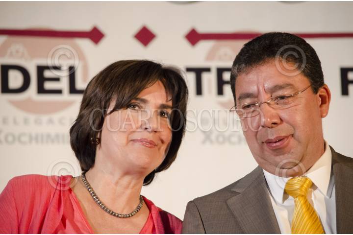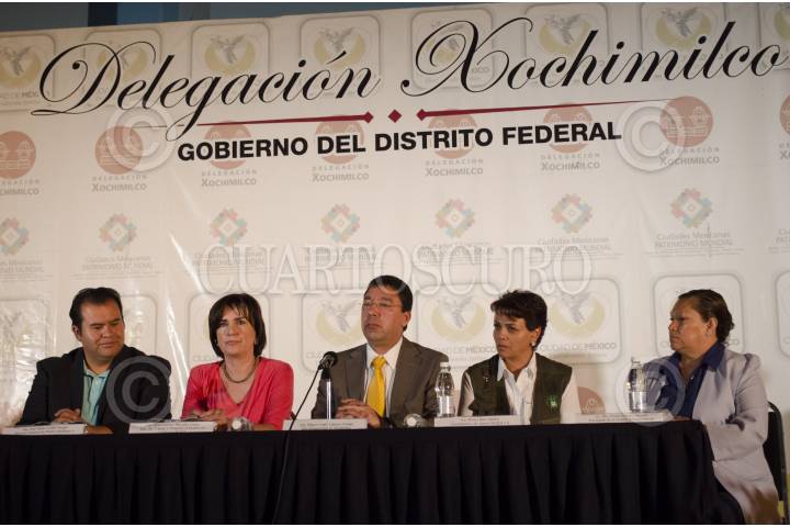 MÉXICO, D.F., 16MAYO2014.- Patricia Mercado, secretaria de Trabajo en el D.F., y Miguel Ángel Cámara, delegado de Xochimilco durante la presentación del Programa de Limpieza de Canales y Mantenimiento con Reforestación. FOTO: MARÍA JOSÉ MARTÍNEZ /CUARTOSCURO.COM
