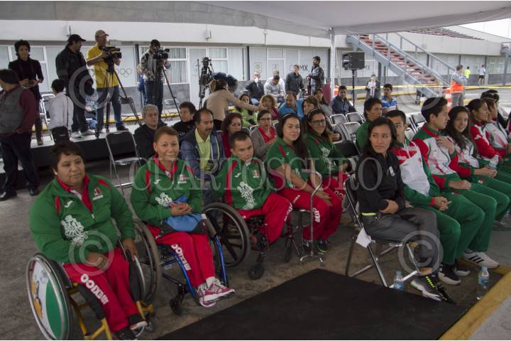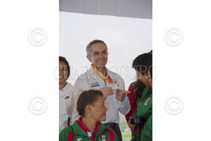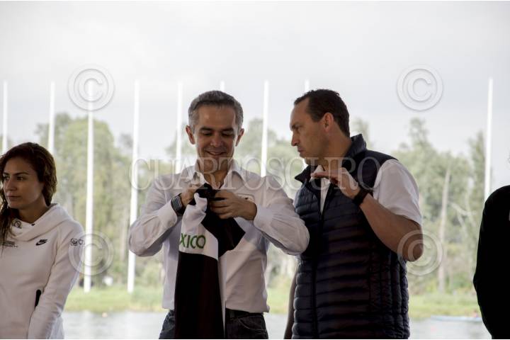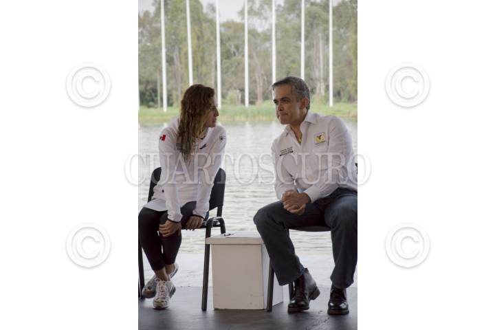 MÉXICO, D.F., 29AGOSTO2015.- Miguel Ángel Mancera, Jefe de Gobierno del Distrito Federal, en compañía de Horacio Vega, Director General del INDEPORTE, Tanya Müller García, Secretaría de Medio Ambiente, Miguel Ángel Camara, Jefe Delegacional de Xochimilco, Edgar Oswaldo Tungüí, Títular de Obras del GDF y Paola Espinosa, medallista olímpica, realizaron la entrega de becas para deportistas de alto rendimiento por parte del programa "Podium" en la pista de Remo y Canotaje "Virgilio Uribe" de Cuemanco. FOTO: GALO CAÑAS /CUARTOSCURO.COM
