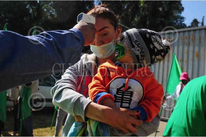 Para ingresar al mitin se tenía que tomar la temperatura y sanitiza a los simpatizantes.