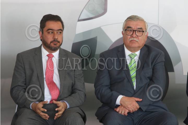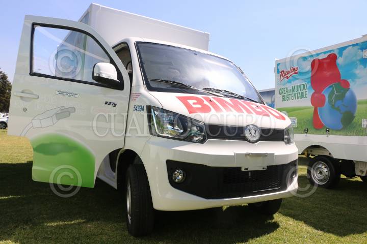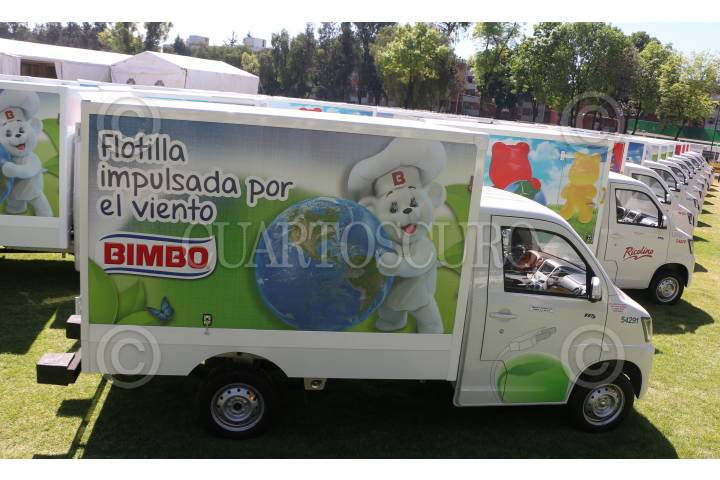 Miguel Ángel Espinoza, Marina Robles y Vidal Llerenas, durante la presentación de la flotilla híbrida y eléctrica de Grupo Bimbo en su planta en Azcapotzalco.