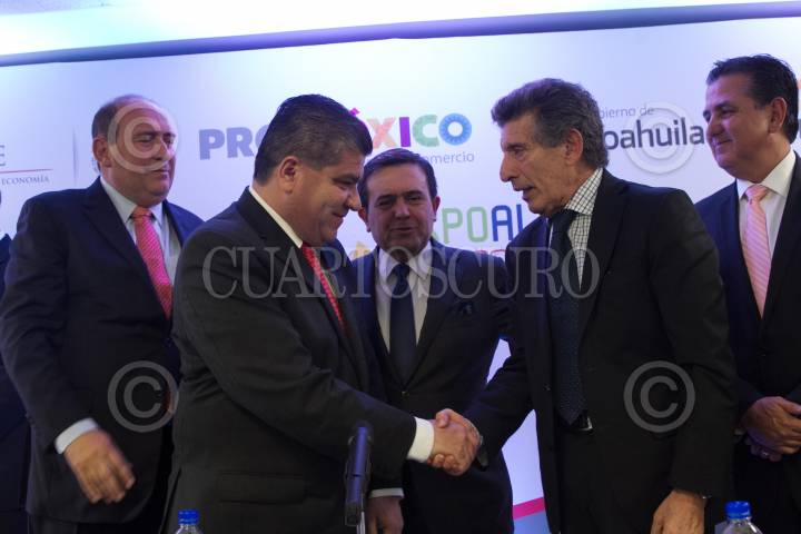 CIUDAD DE MÉXICO, 20ABRIL2016.- Rubén Moreira, gobernador de Coahuila; Miguel Ángel Riquelme Solís, alcalde Torreón, Coahuila; Ildefonso Guajardo, secretario de Economía, y Carlos "Chacho" Álvarez, secretario general de la ALADI, durante la presentación de la Expo ALADI (Asociación Latinoamericana de Integración), un encuentro de negocios que se realizará en la ciudad de Torreón del 19 al 21 de octubre. FOTO: MOISÉS PABLO /CUARTOSCURO.COM