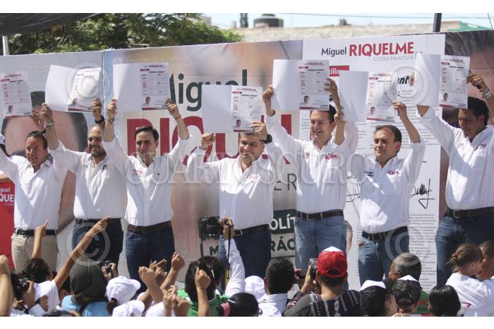SALTILLO, COAHUILA 19MAYO2017.- Miguel Ángel Riquelme Solís, candidato a la gubernatura de Coahuila por el PRI, firmó un compromiso social "monedero rosa" que, según él, beneficiará a madres solteras, personas con discapacidad, de la tercera edad y abuelos que tengan a cargo a sus nietos. Decenas de personas asistieron al mitin que se llevó a cabo en la colonia "Pueblo Insurgente". FOTO: VENUSTIANO MADERO /CUARTOSCURO.COM