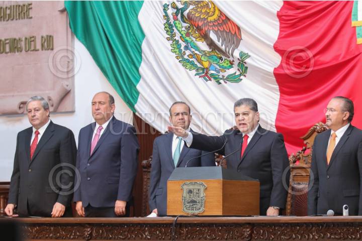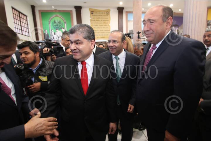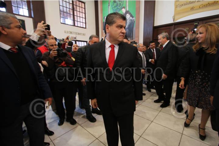 SALTILLO, COAH.-1DICIEMBRE2017.- Miguel Angel Riquelme Solís tomo protesta ante el congreso como gobernador de Cuahuila hoy en la mañana. En el presidium Ruben Moreira, Alfonso Navarrete Prida, secretario del Trabajo en representación de Enrique Peña Nieto, entre otros. FOTO: ALEJANDRO RODRIGUEZ /CUARTOSCURO.COM