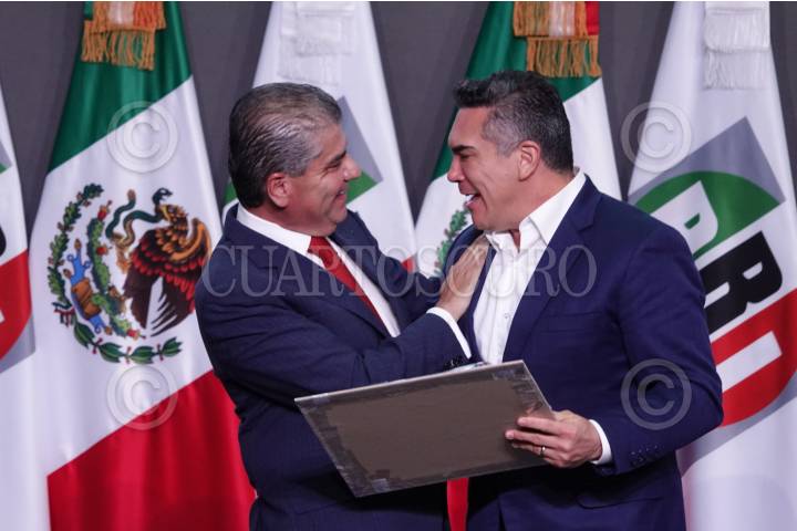 Miguel Ángel Riquelme Solís, gobernador de Coahuila, y Alejandro Moreno, presidente del grupo parlamentario del PRI, se despidieron durante el segundo día del encuentro “Diálogos por México”