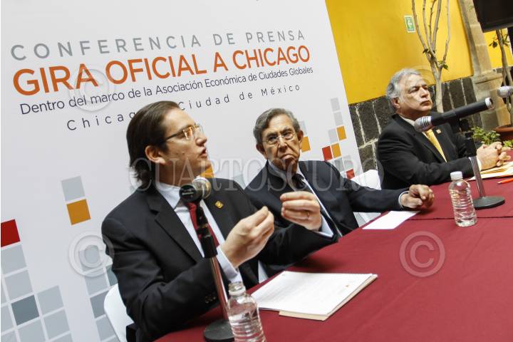 MÉXICO, D.F., 13MAYO2014.- Salomón Chertorivsky, secretario de Desarrollo Económico; Cuauhtemoc Cardenas, coordinador de Asuntos Internacionales y Miguel Torruco Marqués, secretario de Turismo del Gobierno del Distrito Federal durante una conferencia de prensa para informar de la gira de trabajo a celebrarse en los próximos días por la ciudad de Chicago, en el marco del Memorándum de Entendimiento para el Establecimiento de las Ciudades Globales México y Chicago. FOTO: RODOLFO ANGULO /CUARTOSCURO.COM