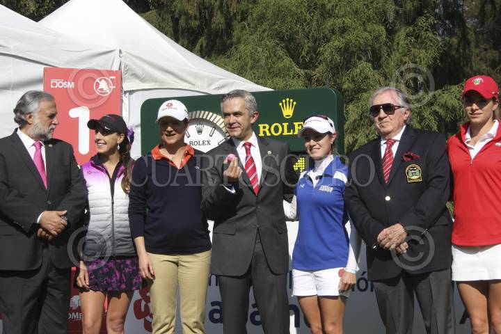 MÉXICO, D.F., 12NOVIEMBRE2015.- El Jefe de Gobierno de la Ciudad de México, Miguel Ángel Mancera Espinosa, inauguró la octava edición del Torneo de Golf “Lorena Ochoa Invitational”, justa femenil que otorga puntos para el ranking de clasificación a los Juegos Olímpicos de Río de Janeiro 2016. Esta será la segunda edición en la que el torneo se jugará en la CDMX y se llevará a cabo del 12 al 15 de noviembre. La justa, que forma parte de la gira de Ladies Professional Golf Association (LPGA), recibe a 36 golfistas profesionales de varios países. Durante su intervención, la anfitriona, ex número uno del mundo en el ranking de esta disciplina, Lorena Ochoa, compartió su deseo porque las deportistas locales logren tener una gran semana para que representen con orgullo a México. FOTO: GDF /CUARTOSCURO.COM
