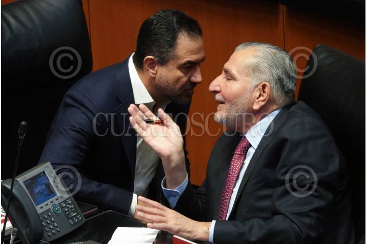 CIUDAD DE MÉXICO, 30OCTUBRE2024.- Los senadores Miguel Ángel Yunes Márquez y Adán Augusto conversaron durante la Sesión Ordinaria de la Reforma y adiciones a los artículos 4 y 133 de la Constitución Política en materia de bienestar. FOTO: GRACIELA LÓPEZ/CUARTOSCURO.COM