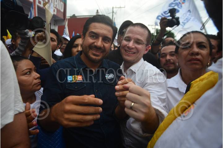 XALAPA, VERACRUZ, 19JUNIO2018.- El candidato de la coalición "Por Mexico Al Frente", Ricardo Anaya, realizó un recorrido en una colonia popular de la ciudad capital acompañado del candidato al gobierno del estado, Miguel Angel Yunes Márquez. FOTO: ALBERTO ROA /CUARTOSCURO.COM