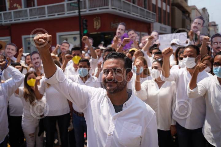 Miguel Ángel Yunes Márquez a quien el Tribunal Electoral de Veracruz le quitó la candidatura a la alcaldía de Veracruz, por no contar con la residencia obligatoria, marcho junto con simpatizantes para exigir le devuelvan su candidatura.
