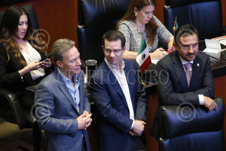 CIUDAD DE MÉXICO, 03SEPTIEMBRE2024.- Los senadores Manuel Velasco (PVEM); Ricardo Anaya (PAN), y Miguel Ángel Yunes Márquez (PAN), durante la sesión en el Senado. FOTO: CUARTOSCURO.COM