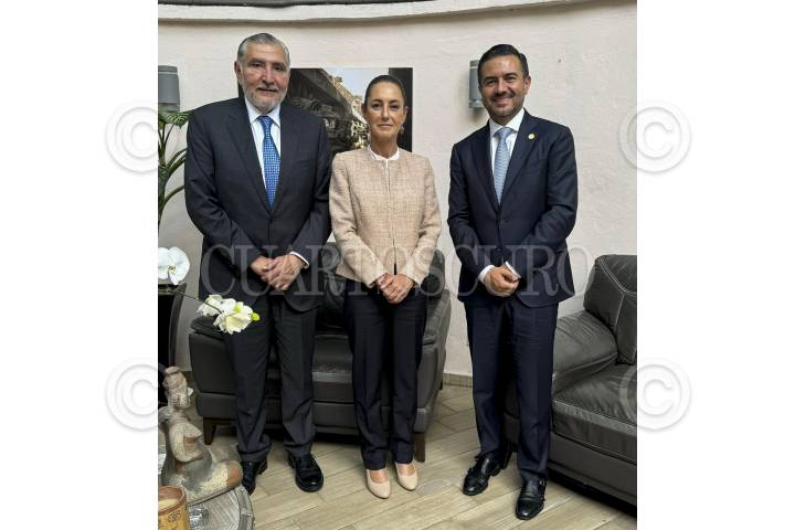 CIUDAD DE MÉXICO, 18SEPTIEMBRE2024.- Adán Augusto López, coordinador de Morena en la Cámara de Senadores, Claudia Sheinbaum Pardo, presidenta electa de México, y Miguel Ángel Yunes Márquez, senador panista, sostuvieron una reunión en las inmediaciones de la casa de transición de la próxima mandataria. FOTO: TOMADA DE REDES/CUARTOSCURO.COM