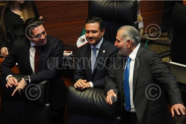 CIUDAD DE MÉXICO, 10ABRIL2025.- El senador Homero Davis Castro, secretario de la Comisión de Hacienda y Crédito Público; el senador Miguel Ángel Yunes Marqués, presidente de la Comisión de Hacienda y Crédito Público, Victoria Rodríguez Ceja, gobernadora del Banco de México, durante la comparecencia en el Senado de la República. FOTO: GRACIELA LÓPEZ/CUARTOSCURO.COM