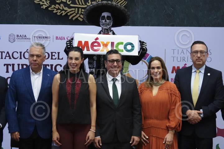 CIUDAD DE MÉXICO, 03SEPTIEMBRE2025.- María del Rocío Adame Muñoz, presidenta municipal de Playas de Rosarito; Miguel Aguiñiga Rodríguez, subsecretario de Turismo; Zaida Luz López Sánchez, secretaria de Turismo de Baja California; y Claudia Lisbeth Moreno Ramírez, diputada federal, durante la inauguración de la exposición “Baja California; donde lo ordinaria se hace extraordinario”, en Punto México de la Secretaría de Turismo. En la muestra se pueden conocer artesanías típicas del estado y sus famosos vinos. FOTO: MOISÉS PABLO/CUARTOSCURO.COM