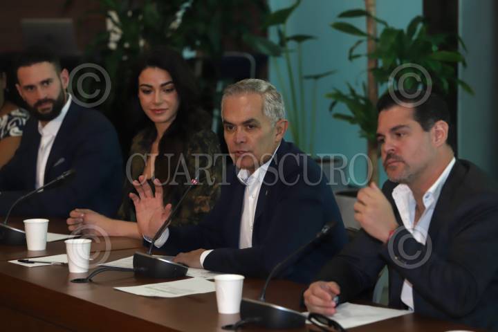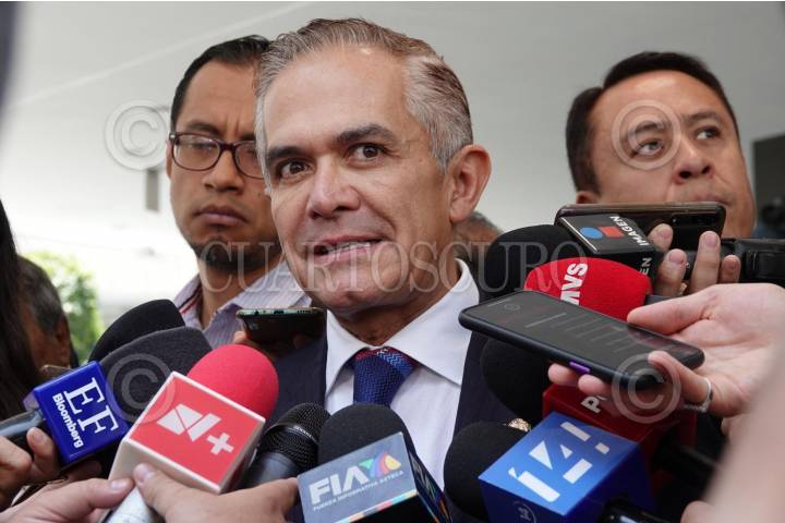 El senador Miguel Ángel Mancera durante un chacaleo a medios en el Patio del Federalismo