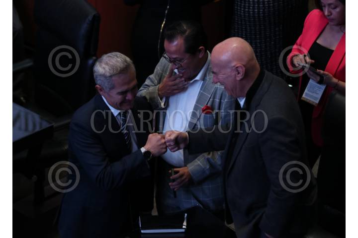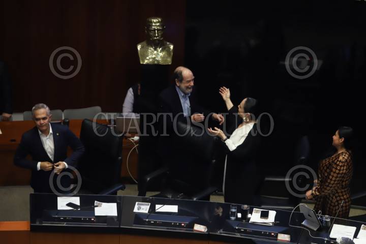 CIUDAD DE MÉXICO, 01FEBRERO2024.- Miguel Ángel Mancera y Dante Delgado Rannauro Durante sesión en la Cámara de Senadores. FOTO: ANDREA MURCIA /CUARTOSCURO.COM