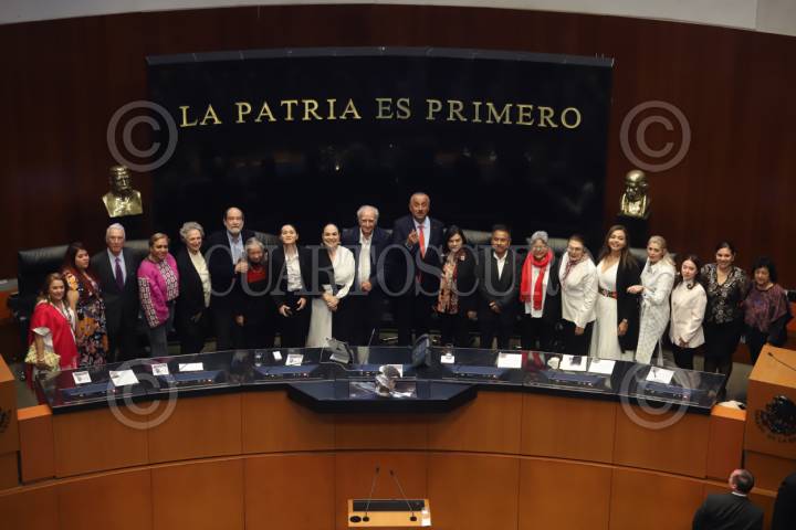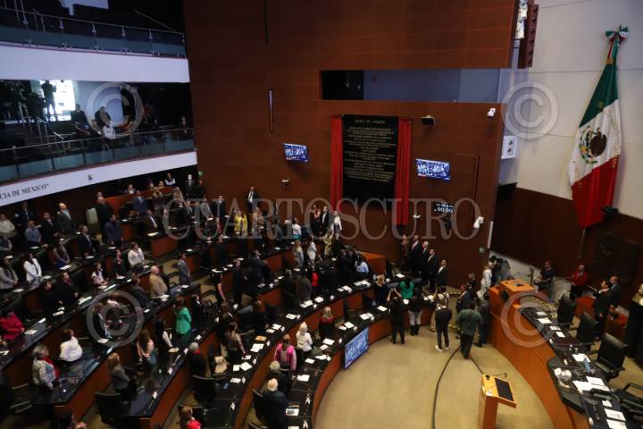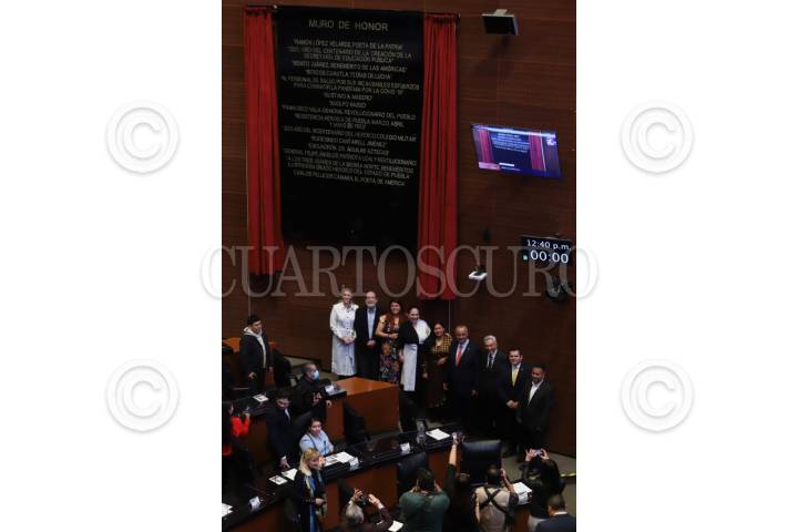 CIUDAD DE MÉXICO, 22FEBRERO2024. Ceremonia solemne por la develación de la inscripción de la leyenda: “Carlos Pellicer Cámara, el Poeta de América", en el muro de honor del Senado de la República. FOTO: EDGAR NEGRETE LIRA/CUARTOSCURO.COM