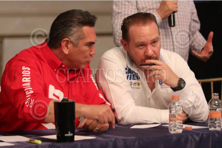 CIUDAD DE MÉXICO, 28ABRIL2024.- Santiago Taboada, candidato a la jefatura de gobierno por la coalición Va por México acompañado de Alejandro Moreno, presidente del PRI durante Asamblea Nacional con la Confederación Nacional de Industriales de Metales y Recicladores (CONIMER). FOTO: ANDREA MURCIA /CUARTOSCURO.COM