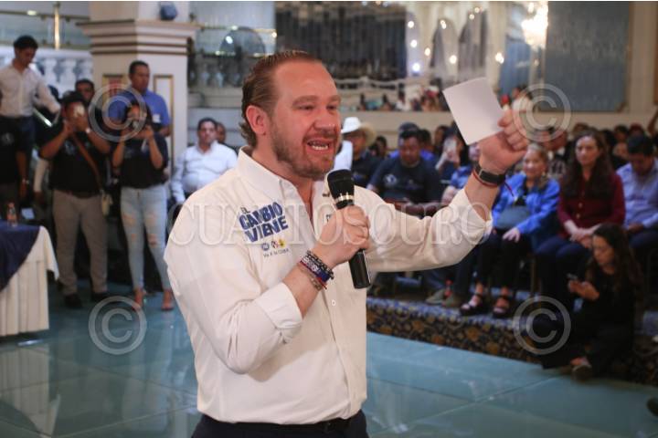 CIUDAD DE MÉXICO, 28ABRIL2024.- Santiago Taboada, candidato a la jefatura de gobierno por la coalición Va por México durante Asamblea Nacional con la Confederación Nacional de Industriales de Metales y Recicladores (CONIMER). FOTO: ANDREA MURCIA /CUARTOSCURO.COM