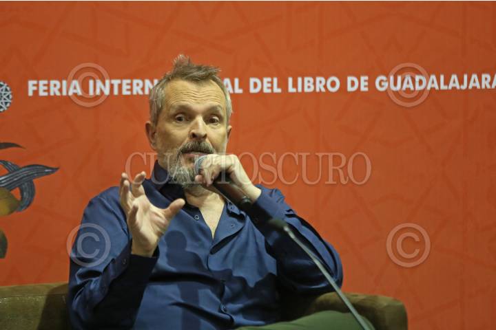 Miguel Bosé, durante la conferencia de prensa que ofreció en la Feria Internacional del Libro de Guadalajara.