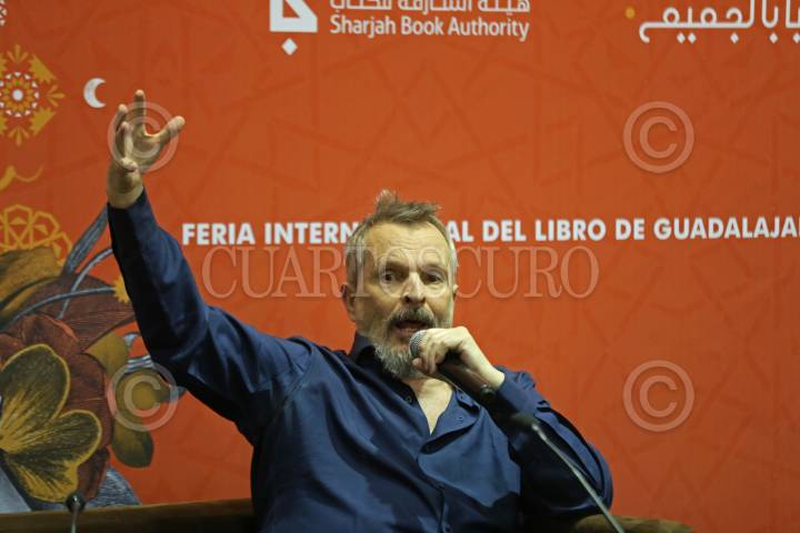 Miguel Bosé, durante la presentación de su libro “Bosé”, esto durante la edición 36 de la Feria Internacional del Libro de Guadalajara.