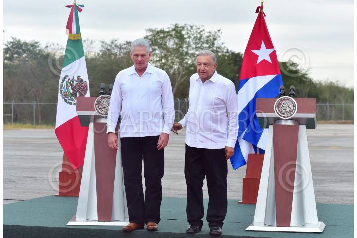 Ceremonia de bienvenida del presidente Andrés Manuel López Obrador a su homólogo Miguel Díaz-Canel Bermúdez en Campeche.