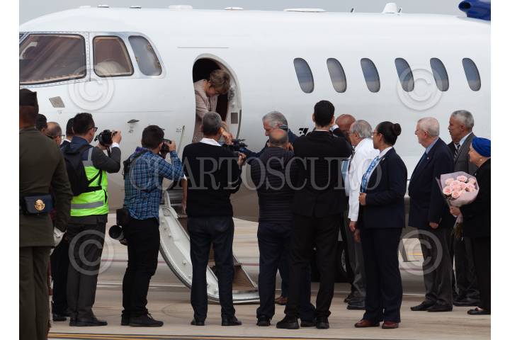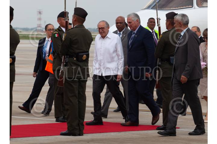 ZUMPANGO DE OCAMPO, ESTADO DE MÉXICO, 29SEPTIEMBRE2024.- Miguel Díaz-Canel Bermúdez presidente de Cuba a su llegada al Aeropuerto Internacional Felipe Ángeles (AIFA) donde se espera que asista a la toma de protesta que se llevará a cabo el próximo primero de octubre. Fue recibido por David Kershenobich Stalnikowitz. FOTO: ANDREA MURCIA /CUARTOSCURO.COM