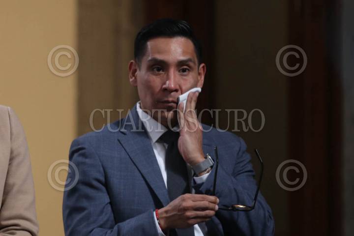 CIUDAD DE MÉXICO, 09JULIO2025.- Miguel Elorza Vásquez, coordinador de Infodemia, durante su participación en la Conferencia del pueblo, encabezada por Claudia Sheinbaum, presidenta de México, realizada en Palacio Nacional. FOTO: GRACIELA LÓPEZ/CUARTOSCURO.COM