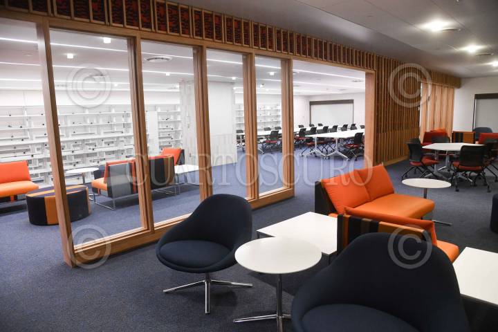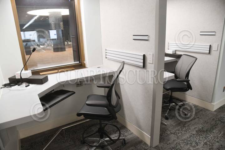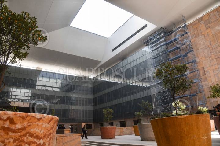 CIUDAD DE MÉXICO, 17DICIEMBRE2024.- Recorrido por las instalaciones de la "Nueva embajada de Estados Unidos en Mexico" ubicada en la colonia Irrigación de la colonia Miguel Hidalgo. El recinto de siete niveles albergará 81 ventanas consulares, el Centro Benjamín Franklin y contará con un sistema de paneles solares para su alimentación eléctrica. FOTO: MARIO JASSO/CUARTOSCURO.COM