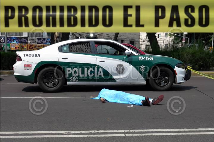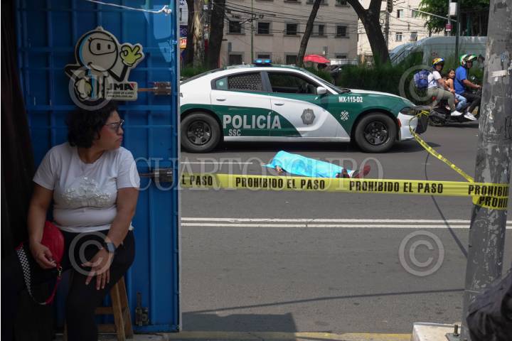 CIUDAD DE MÉXICO 10JUNIO2025.- Custodiado por una patrulla de la policía capitalina quedó el cuerpo de un hombre que murió por un aparente infarto en la Avenida Marina Nacional de la alcaldía Miguel Hidalgo. FOTO:ROGELIO MORALES /CUARTOSCURO.COM