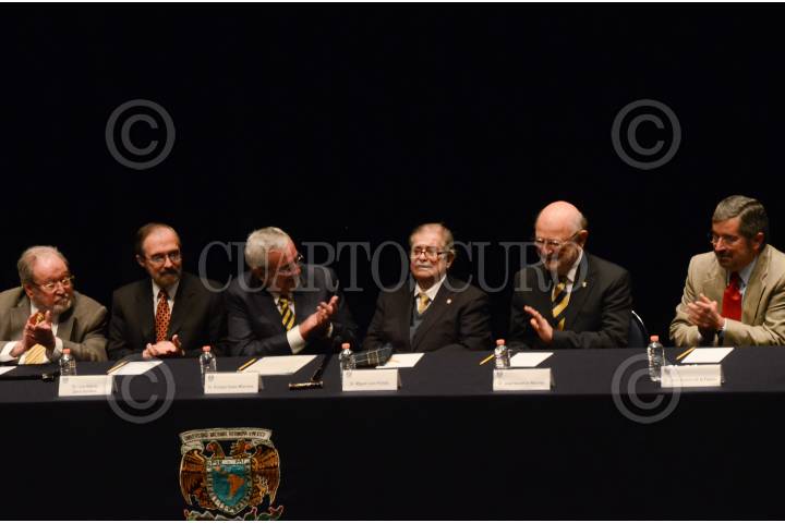 CIUDAD DE MÉXICO, 08OCTUBRE2019.- Francisco Xavier Soberón, presidente en turno de la Junta de Gobierno, Enrique Graue Wiechers, rector de la UNAM, María Elena Vázquez, presidenta en turno de la Junta de Patronos, todos al centro, durante el homenaje académico a historiador y filósofo del náhuatl Miguel-León Portilla, fallecido el pasado 01 de octubre. FOTO: GALO CAÑAS /CUARTOSCURO.COM