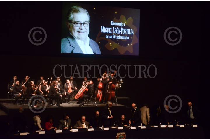 CIUDAD DE MÉXICO, 08OCTUBRE2019.- El historiador y filósofo del náhuatl Miguel-León Portilla, fallecido el pasado 01 de octubre, fue homenajeado en la Sala Nezahualcóyotl del Centro Cultural Universitario de la UNAM. FOTO: GALO CAÑAS /CUARTOSCURO.COM