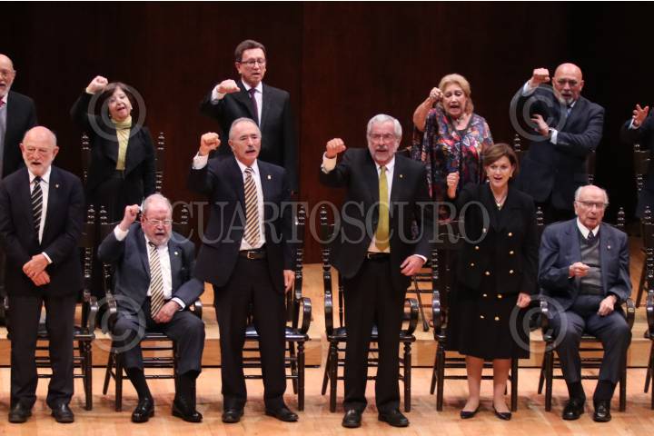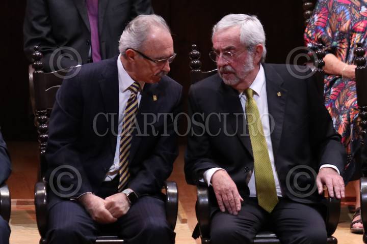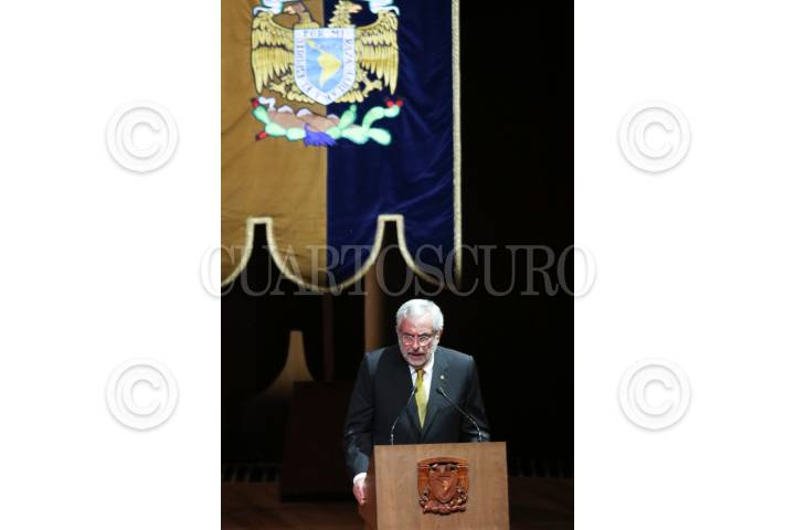CIUDAD DE MÉXICO, 08OCTUBRE2019.- Enrique Graue Wiechers, rector de la UNAM, María Elena Vázquez, presidenta en turno de la Junta de Patronos, todos al centro, durante el homenaje académico a historiador y filósofo del náhuatl Miguel-León Portilla, fallecido el pasado 01 de octubre. FOTO: GALO CAÑAS /CUARTOSCURO.COM