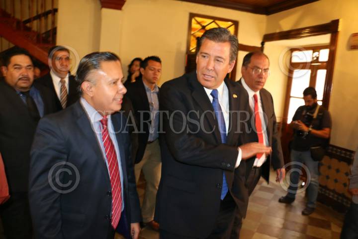 GUANAJUATO, GUANAJUATO, 13JULIO2016.- Miguel Márquez Márquez, gobernador de Guanajuato, acompañado de Saúl Juarez, Subsecretario de Cultura y Edgar Castro, edil de Guanajuato a su llegada al Teatro Juarez donde se presentó el XLIV edición del Festival Internacional Cervantino. FOTO: SAÚL LÓPEZ /CUARTOSCURO.COM