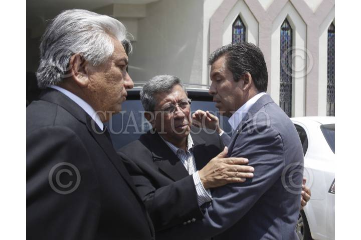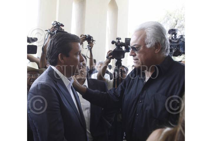 LEÓN, GUANAJUATO, 08JUNIO2013.- Miguel Márquez Márquez, gobernador del estado de Guanajuato, da su pesame a familiares del empresario Juan Ignacio Torres Landa García durante su funeral y quien falleció el día de ayer al caer el helicóptero en el que viajaba junto con cuatro personas más, en el interior del exclusivo Club de Golf La Loma, en el poniente de San Luis Potosí. FOTO: JOSHUA RAMÍREZ / CUARTOSCURO.COM