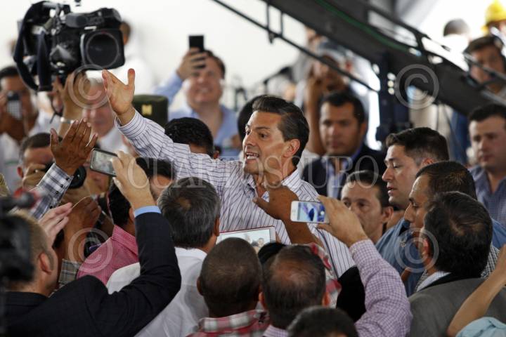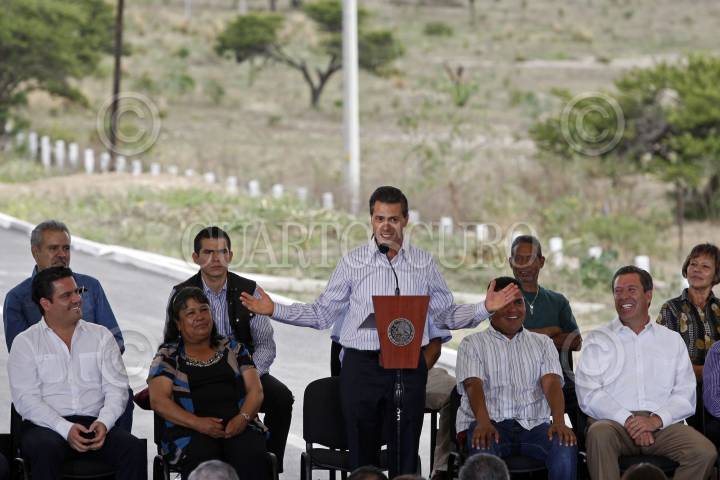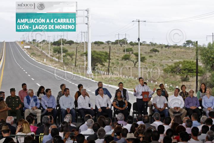 LAGOS DE MORENO, JALISCO, 28ABRIL2015.-Enrique Peña Nieto Presidente de México, en compañía del Secretario de Comunicaciones y Transportes, Gerardo Ruiz Esparza así como de los Gobernadores de Jalisco y Guanajuato, Jorge Aristóteles Sandoval Díaz y Miguel Márquez Márquez respectivamente, entregaron la obra de ampliación de la carretera León-Lagos de Moreno. FOTO: FERNANDO CARRANZA GARCIA / CUARTOSCURO.COM