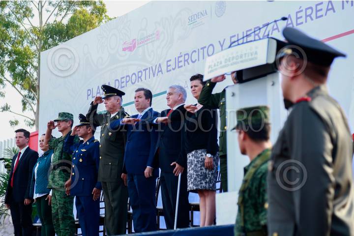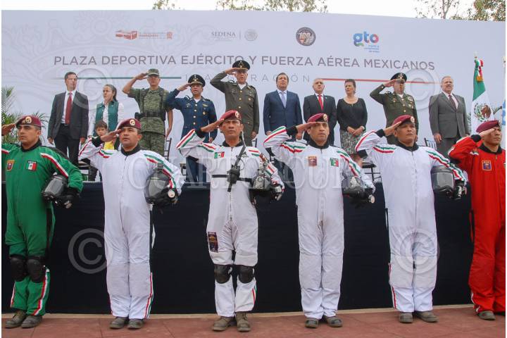 GUANAJUATO, GUANAJUATO, 09OCTUBRE2015.- Salvador Cienfuegos Cepeda, titular de la Secretaria de la Defensa Nacional, acompañado del gobernador del estado Miguel Márquez Márquez inauguraron la plaza deportiva “Ejército y Fuerza Aérea Mexicanos”. FOTO: SEDENA /CUARTOSCURO.COM