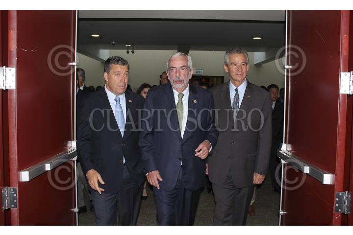 LEÓN, GUANAJUATO, 06OCTUBRE2016.- Enrique Graue, rector de la Universidad Nacional Autónoma de México (UNAM) y presidente de la Academia Nacional de Medicina de México; José Narro Robles, secretario de Seguridad Pública; Juan Ramón de la Fuente, ex rector de la UNAM, y Miguel Márquez Márquez, gobernador del estado, presidieron la inauguración del Congreso Nacional de Medicina. FOTO: LUÍS RAMÍREZ /CUARTOSCURO.COM