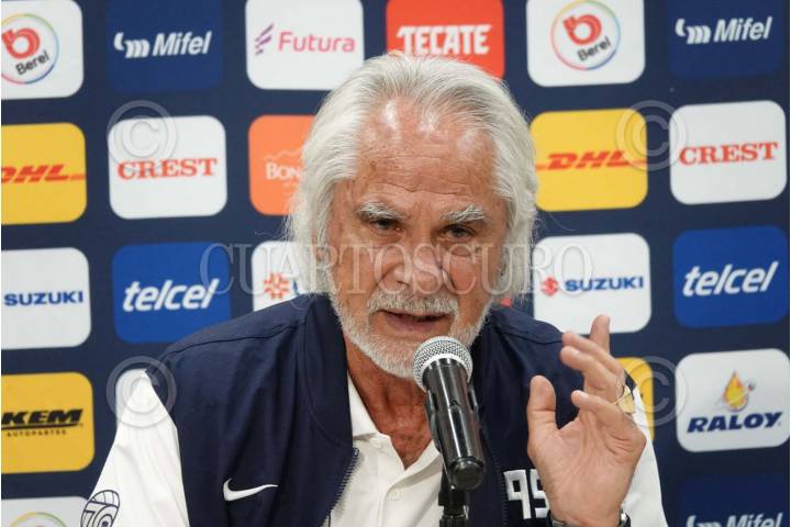 CIUDAD DE MÉXICO, 19JULIO2024.- Miguel Mejía Barón, vicepresidente deportivo del Club Universidad Nacional, durante la presentación oficial de los refuerzos del Club: Michell Rodríguez (mediocampista), Rubén Duarte (defensa), Ignacio Pussetto (delantero) y Jorge Ruvalcaba (centrocampista) fueron presentados oficialmente ante el club para disputar las siguientes jornadas del torneo. FOTO: GALO CAÑAS/CUARTOSCURO.COM