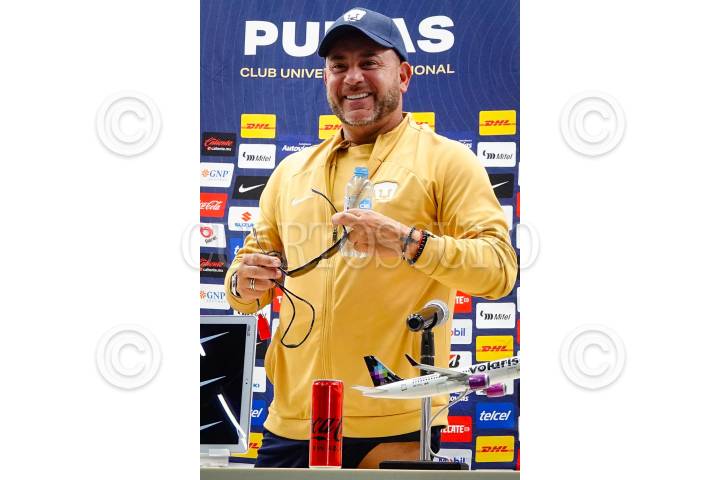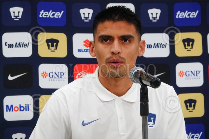 CIUDAD DE MÉXICO, 10ENERO2024.- Guillermo Martínez, delantero, durante la presentación de los nuevos jugadores de los Pumas de la Universidad en la Cantera. FOTOS: ROGELIO MORALES /CUARTOSCURO.COM