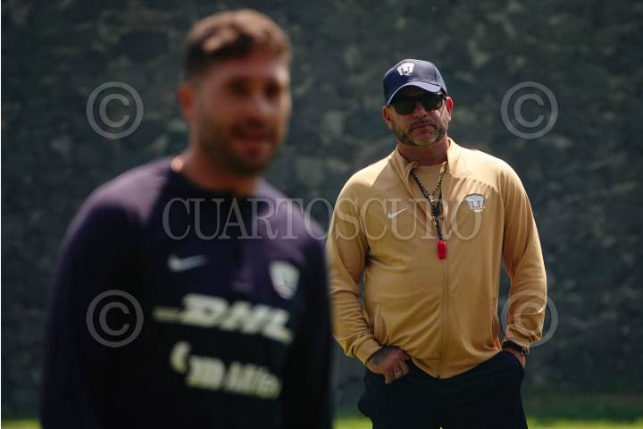 Antonio Mohamed durante el entrenamiento de pumas en Cantera previo al encuentro frente Monterrey.