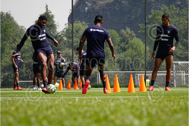 El equipo de los Pumas durante su entrenamiento en Cantera previo al encuentro frente Monterrey.